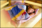 | Snuggle Sac -unipussi pitää lapsen lämpimänä. Peittoa tai lakanaa ei voi potkia pois. Yöpuulle on mukava kömpiä iltaisin, ja aamuisin vanhemmilla on enemmän aikaa kun petaamista ei tarvita. Monilla lapsilla on vaiheita jolloin he sätkivät, potkivat ja ryömivät unissaan. Unipussissa nukkuminen kuitenkin rauhoittaa usein levottomankin nukkujan unet. Snuukkeli-pussi sopii myös päiväunille, torkkumiseen vaikka telkkarin edessä tai kesällä aitassa nukkumiseen kaverin kanssa. |