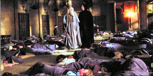 Warner Brothers Production tilasi Snuukkeli-pusseja 470 kpl Tylypahkan noitien ja velhojen koululaisille ja Harry Potterille myös. Nämä olivat käytössä elokuvassa Azkabanin vanki. Yllä ysäytyskuva elokuvasta. Kirjailijan omatkin lapset nukkuvat Snuggle Sac -pusseissa.