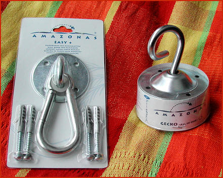 AMAZONAS Easy+ on riippumattojen kiinnittämiseen tarkoitettu lapsiperheessäkin turvallinen seinäkoukku. Pakettiin kuuluu myös neljä järeää ruuvia, sekä niihin sopivat tulpat ja prikat. Oikein kiinnitettynä Easy+ kestää 120 kg painon. Useimmiten tarvitaan kaksi Easy+-pkt. | |||