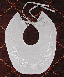 Yksi koko n. 56-68 cm. Kauluksen ympärysmitta helposti säädettävissä ja hihansuissa paidoista tuttu nappikiinnitys (tarvittaessa nappia voidaan siirtää, jolloin hihansuun ympärysmitta kasvaa tai pienenee). Jokainen mekko on pakattu tukevaan pahvirasiaan. Kuvassa mekko ilman leukalappua.. |