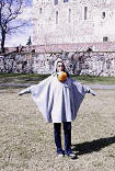 ulos kantoliinasta tai -repusta, kuin taaperoilla on tapana. Ponchoon kuuluu kaulahuivi, jota voi käyttää