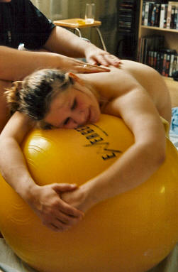 äiti liukastu kun nousee jaloilleen. Käsien hieronta öljyllä on hyvin miellyttävää, jos hierojalla on kaksi kättä vapaana. Kämmenen paineleminen tai sively peukalon paksujen kohtien kohdalta tai sormien "venyttäminen" tuntuu hyvältä ja rentouttavalta. Liikkeet ovat sormien luiden suuntaiset. Käsivarsia hierotaan vartaloon päin. Otsan hierominen sormenpäillä pyörittelemällä tai sivelemällä ei kaipaa edes öljyä. Rento otsa rentouttaa koko vartalon. Kasvoista kannattaa yrittää hieroa suun ympärystää hellästi, jos se äidistä tuntuu rentouttavalta. Kasvojen ja etenkin suun ympäryksen rentous on avautumisen kannalta tärkeää. Suu tiukasti supussa pitää myös kohdun suuta tiukempana. Vatsaa ja kylkiä voi hieroa, ehkä mielellään hellästi öljyn kanssa. Jos pakarat ovat rennossa asennossa, myös niiden hierominen voi tuntua hyvältä. Pakarat ovat iso lihasryhmä ja niitä hieromalla verenkierto paranee. |