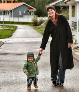 Huovutettu villaneulos, boiled wool, on erinomainen materiaali äitien käyttöön: hengittää, joustaa, lämmittää, hylkii vettä ja näyttää hyvältä. Kangas valmistetaan kutistamalla villaneulosta n. puoleen alkuperäisestä koostaan ja neuloksen nurjasta puolesta tulee "kupliva" päällipuoli. Pinta on erittäin kaunis ja elävä. Alkuperäisen kankaan langat ovat ohuita, mutta huovutusprosessin myötä kankaasta tulee tukevaa. Silti luonnollinen jousto säilyy ja kangas tuntuu päällä ihanan kevyeltä. |