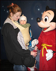Mikki Hiiri tutuksi. Äidin lähellä on turvallista pitkilläkin matkoilla. |
