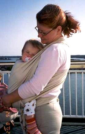 Kun Alinaa (19.3.2001) oli pieni vauva kannoin häntä rintarepussa ja neiti