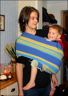 mukaan, kuten vaatteet. Näin liina tukee lasta ja asettuu mukavasti