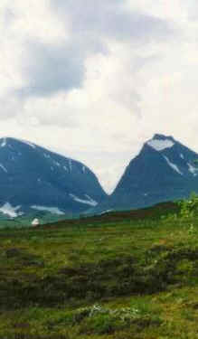 | Niin, olimme siis Kebnekaisella. Luulimme, että maasto olisi todella helppokulkuista, koska netissä oli mainittu, että polku on helppokulkuista ja hankalimpien kohtien yli on pitkospuut. No, tämä koskikin vain ensimmäistä 20 kilometriä. Sen jälkeen ei ollut pitkospuista enää tietoakaan ja maastokin alkoi olla jo aika haastavaa. Ylitimme muutamia koskia. Ensimmäisestä selvisin Adiel selässä ja jopa kuivin jaloin. Toisella kerralla oli niin haastavan näköinen ylitys, että annoin Adielin Teemulle joka ylitti kosken kanssani (sain ottaa Teemusta tukea). Sitten Adiel sidottiin taas minun selkääni ja Teemu haki rinkkansa ja ylitti kosken uudestaan. Tällä kertaa emme selvinneet kuivin jaloin. | ||