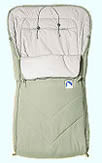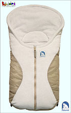 | Jääkarhun pussit ovat todella muhkeita ja kookkaita, n. metrin pituisia. Ne saa avattua täysin litteiksi peitoiksi nopeasti vetoketjuilla, ja yläosan saa samalla lailla kunnolla suppuun kuin pienessäkin lämpöpussissa. Sopivat turvaistuimiin, rattaisiin ja vaunuihin. Kunnolliset reiät 5-pistevöille ja takaosassa liukuesteet. Alaosassa heijastintere. |