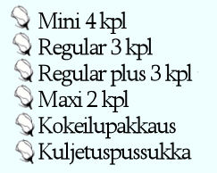 (Koskee Mini, Regular, Regular plus ja Maxi -paketteja.) |