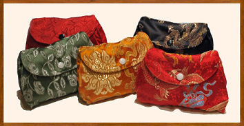 Aidosta brokaadista ommellussa kuljetuspussukassa puhtaat ja käytetyt siteet kulkevat helposti ja hygienisesti mukana omissa lokeroissaan. |
