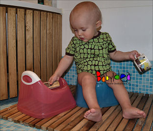 "A transparent or semitransparent potty is useful in that you know instantly when your child goes and can provide immediate feedback by praising him while he is going, or immediately thereafter. He is then free to leave the potty as soon as he is finished. This type of positive reinforcement encourages him to use the potty on a regular basis."