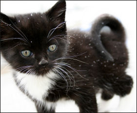 Sateen jälkeen maasta nousi usva, joka peitti kaiken näkymättömään verhoonsa. Ihmiset näkivät vain pienen kissanpennun kiipeävän ylös puuhun, toisenkin kissanpennun kiipeävän toiselle oksalle ja kolmannen, joka istahti puun latvaan, korkealle ylös ja rupesi kehräämään. |